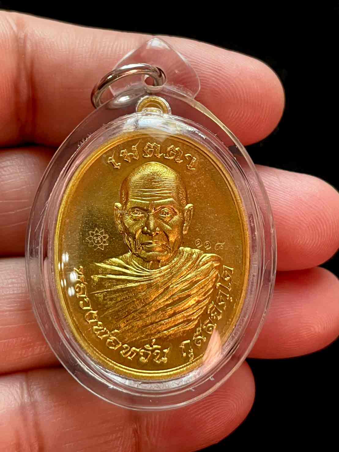 สร้างปี 2558 เนื้อทองเหลือง เลข 118 จำนวนสร้าง 2499 เหรียญ เลี่ยมพลาสติก สวยงาม