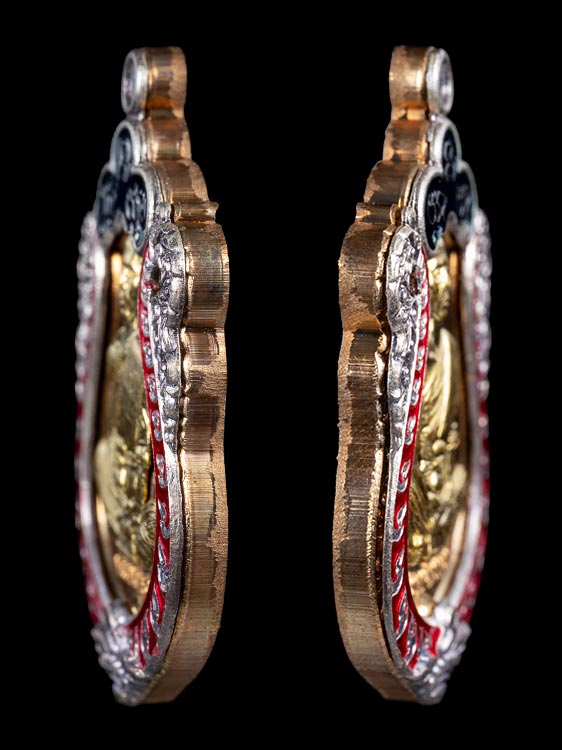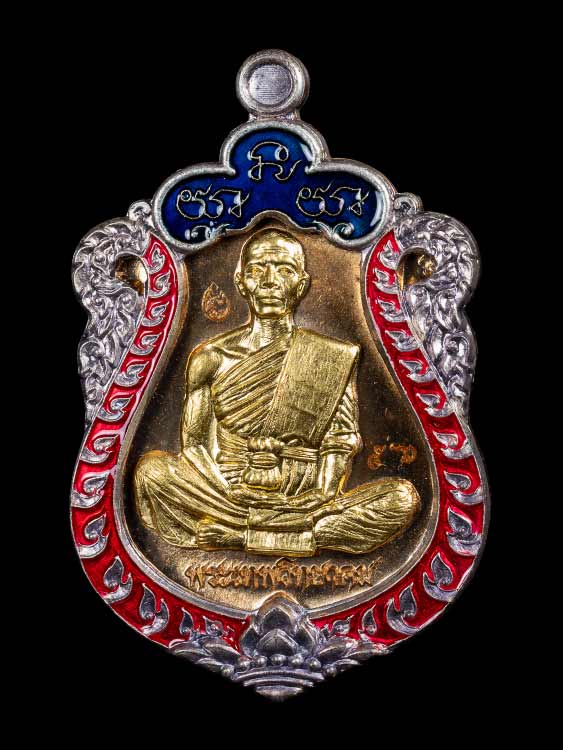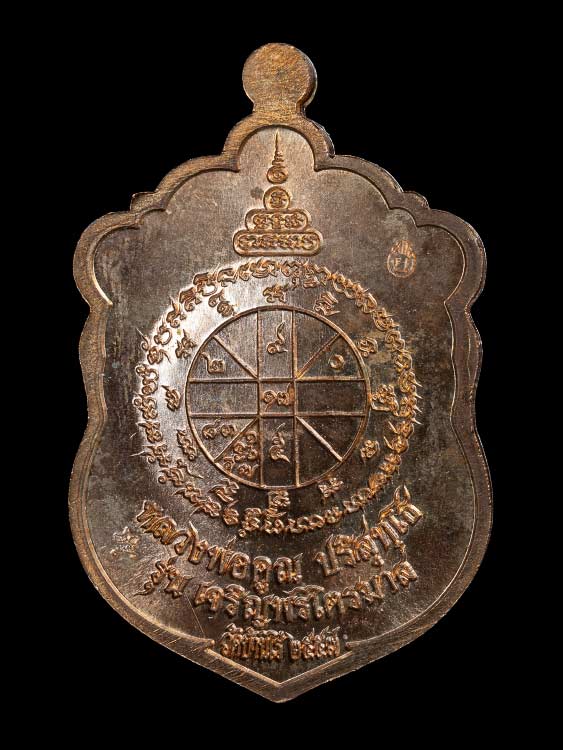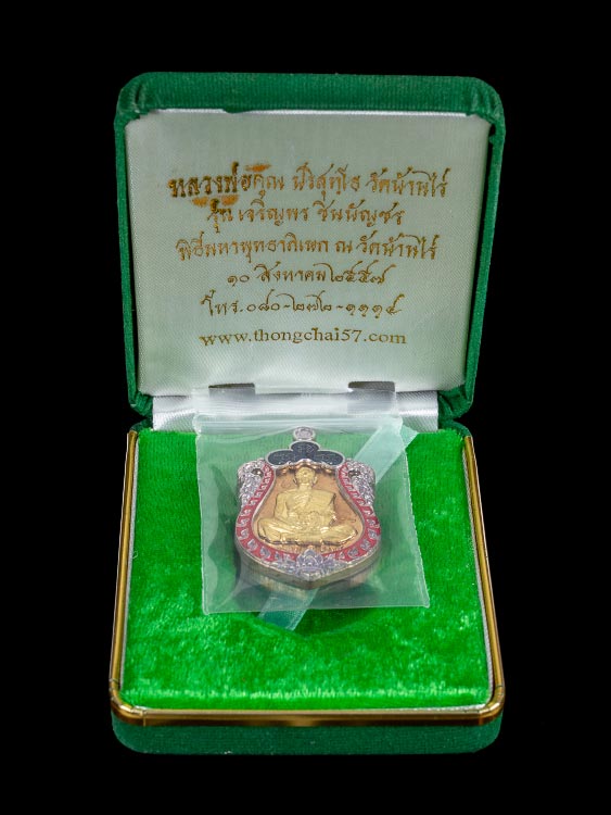 เหรียญหลวงพ่อคูณ วัดบ้านไร่ รุ่นเจริญพรไตรมาส เนื้อนวะโลหะลงยาหน้าทอง ปี 2557 พร้อมบัตรรับรองการันตรีพระ