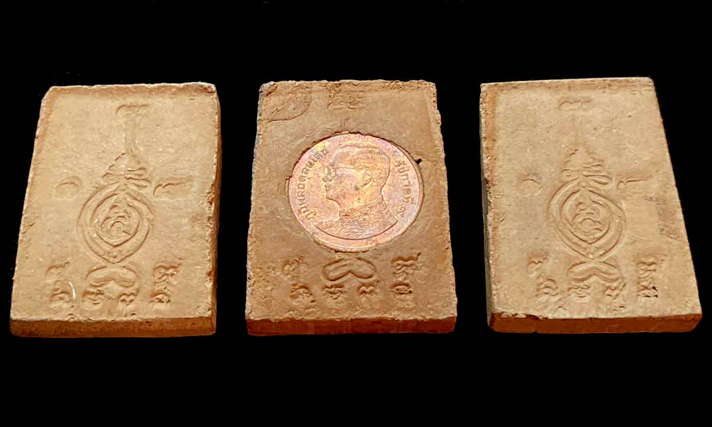 วัดใจ 3 องค์ สมเด็จขาโต๊ะ หลังขวัญถุง ที่ระลึกในงานปิดทองฝังลูกนิมิต หลวงปู่สิงห์ วัดเขาหวาย จ.ระยอง 2561 กล่องเดิม