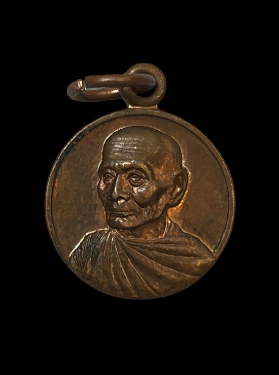 วัดใจ@ เหรียญ กลมเล็ก หลวงพ่อพูล วัดไผ่ล้อม จ.นครปฐม ปี๒๕๔๕ หลังยันต์ เนื้อทองแดงผิวไฟ