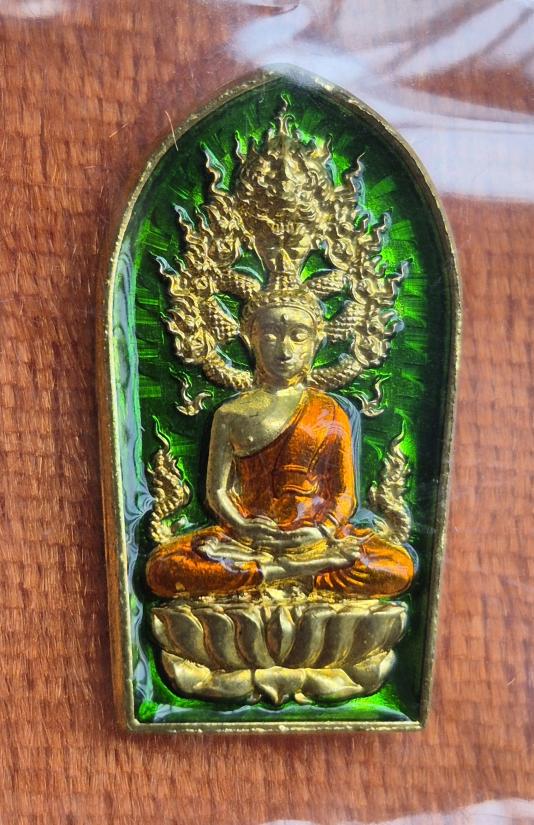 พระนาคปรก ครูบาศักดิ์ อ.งาว จังหวัดลำปาง ทองทิพย์ลงยาเขียว เลข 50 ปลุกเสกกลางสายน้ำไหลขึ้นทิศเหนือ