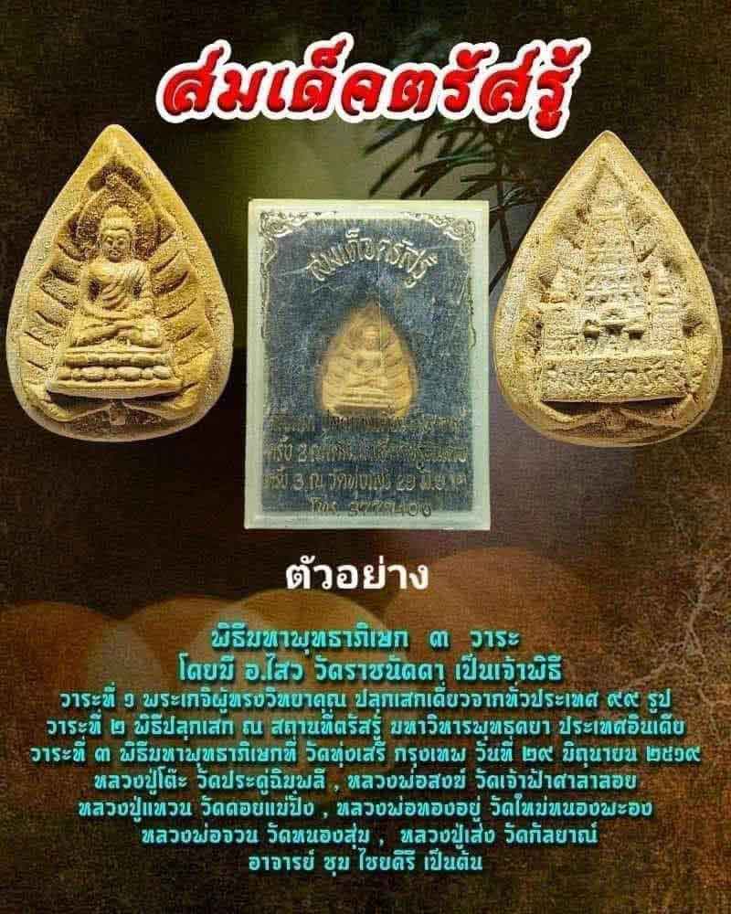 พระสมเด็จตรัสรู้ เนื้อนวโลหะ วัดทุ่งเสรี กรุงเทพ ปี 2519 หลวงปู่โต๊ะ วัดประดู่ฉิมพลี หลวงพ่อสงฆ์ วัดเจ้าฟ้าศาลาลอย หลวงปู่แหวน วัดดอยแม่ปั๋ง พระอาจารย์ ชุม ไชยคีรี ร่วมปลุกเสกพิธีใหญ่ กล่องเดิม
