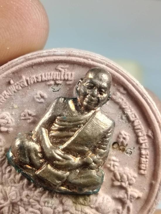 พระผงรูปเหมือนฐานปูปลา หน้ากากทองแดง ด้านหลัง 12 ปี นักษัตร ( ปีชวด ) รุ่น พรายบูรพาราชาโชค สร้างอุโบสถ ปี 2550 เนื้อ ชมพู หมายเลข 88 พร้อมกล่องกำมหยี่เดิมจากวัด รุ่นประสบการณ์