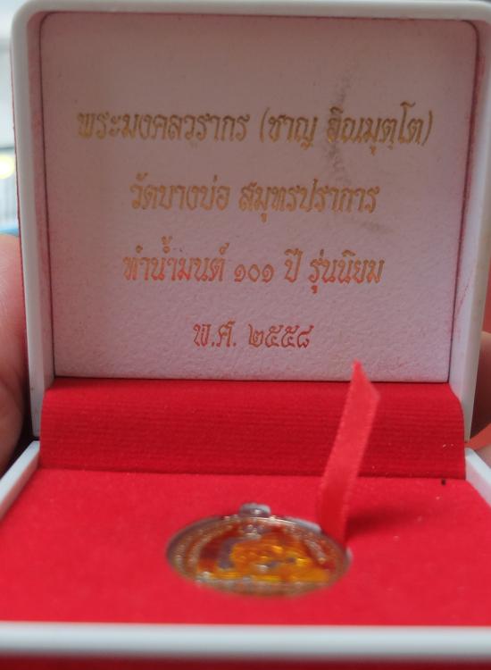 เหรียญทำน้ำมนต์ 101 ปี หลวงพ่อชาญ วัดบางบ่อ ปี 2558 เนื้อเงินลงยา