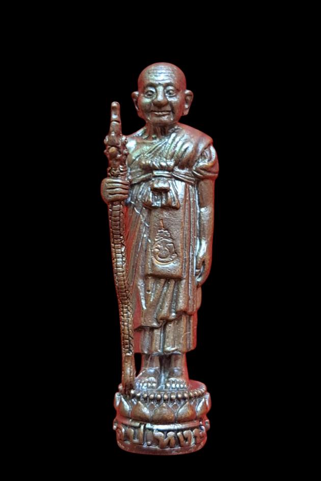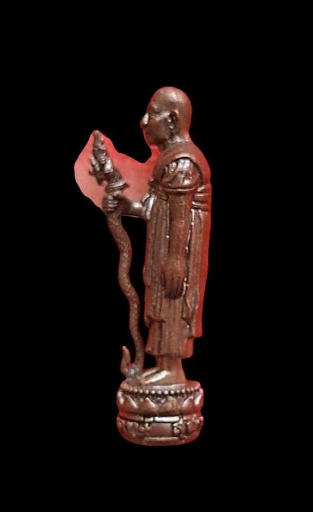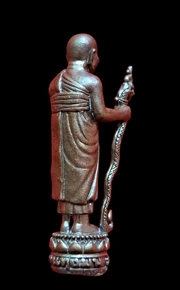 รูปหล่อยืนถือไม้เท้า หลวงปู่หงษ์ พรหมปัญโญ ออกผ้าป่าสามัคคี ปี 2555 #เนื้อทองแดงรมดำ ก้นอุดผงวิเศษ (พระสวยมาก)