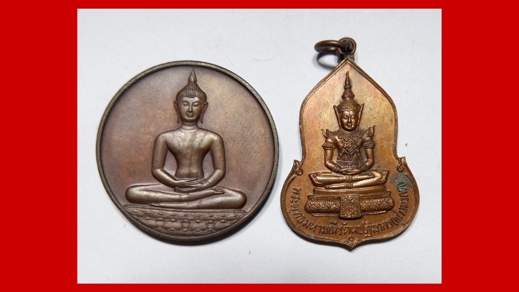 เหรียญพระแก้วมรกต ธนาคารศรีนคร จัดสร้าง+เหรียญพระพุทธสิหิงค์ หลัง ภปร ที่ระลึก 700 ปีลายสือไทย กรมธนารักษ์จัดสร้าง