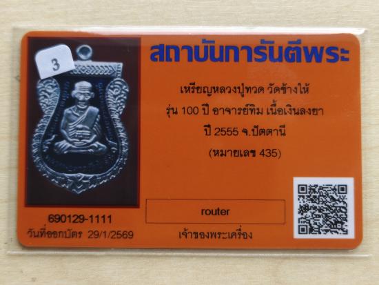 เหรียญหลวงปู่ทวด 100 ปี เนื้อเงินลงยา + บัตรรับรอง ( สภาพสวย )
