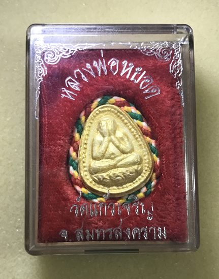 ***เคาะเดียว***พระปิดตา หลวงพ่อหยอด วัดแก้วเจริญ จ.สมุทรสงคราม เนื้อผง ลงทอง ล้อมเชือกไหมห้าสี พร้อมกล่องเดิม |
