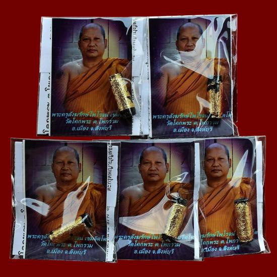ชุด 5 ดอก...ตะกรุดพญาบุญลือมหาเสน่ห์ (ลงรักปิดทอง) ปี 2555 หลวงพ่อไพโรจน์ วัดโคกพระ จ.สิงห์บุรี พร้อมซองรูปใบฝอยเดิมจากวัด