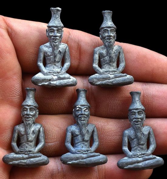ชุด 5 องค์...ปู่แก่ เนื้อชินตะกั่วผสมแร่อาถรรพณ์ ใต้ฐานจารยันต์ ปี 2555 หลวงพ่อสวาท วัดบางพึ่ง จ.สมุทรปราการ พร้อมซองรูปใบฝอยเดิมจากวัด สภาพพระตามรูปที่ลงทุกประการ (ขนาดประมาณ 2.5 x 3 ซม.)