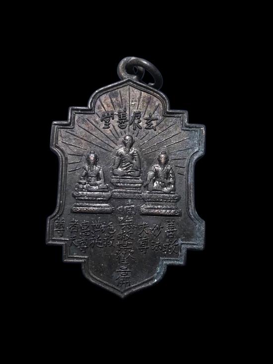 รายละเอียด เหรียญสามเซียนมูลนิธิการกุศลสงเคราะห์ ปี2497 ออกวัดญวน สะพานขาว กทม. เนื้อทองแดงรมดำ หลวงพ่อบ๋าวเอิง หลวงพ่อโอภาสี อธิษฐานจิต