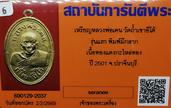 เหรียญหลวงพ่อเคน วัดถ้ำเขาอีโต้ รุ่นแรกพิมพ์มีกลาก เนื้อทองแดงกะไหล่ทอง ปี2501 จ.ปราจีนบุรี + บัตรG-pra สภาพสวยเดิมค่ะ สภาพตามรูปทุกประการค่ะ