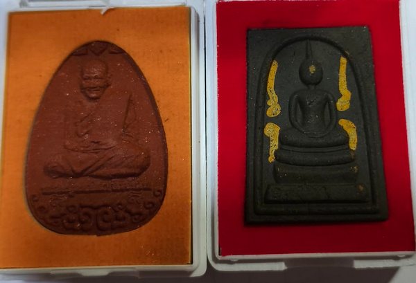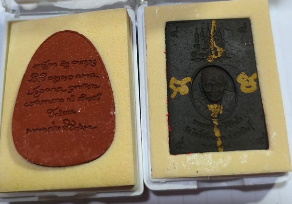 พระผงหลวงปู่มหาศิลา สิริจันโท สมเด็จผงเก่ารุ่นเสาร์๕ พระผงนั่งเมฆเลื่อนยศ พร้อมกล่องเดิม