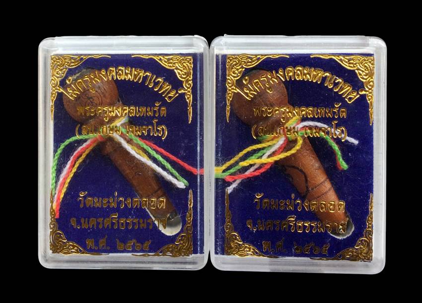 +!!เคาะเดียวllดง ตลอดสาย!!+ (รับ 2 อัน) ไม้ครูมงคลมหาเวทย์ หลวงปู่เกษม วัดมะม่วงตลอด จ.นครศรีธรรมราช ปี65 ขนาดยาว 4.5 ซม. อุดมวลสาร เพชรหน้าทั่งเส้นเกษา ด้านปลายฝังมวลสาร+เม็ดเงินแท้ มีจารและหมายเลขตามรูป พร้อมกล่องครับ