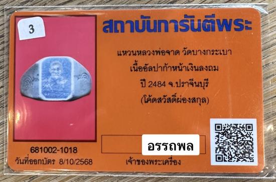 แหวนหลวงพ่อจาด วัดบางกระเบา เนื้ออัลปาก้าหน้าเงินลงถม ปี 2484 จ.ปราจีนบุรี (โค้ดสวัสดิ์ผ่องสกุล)