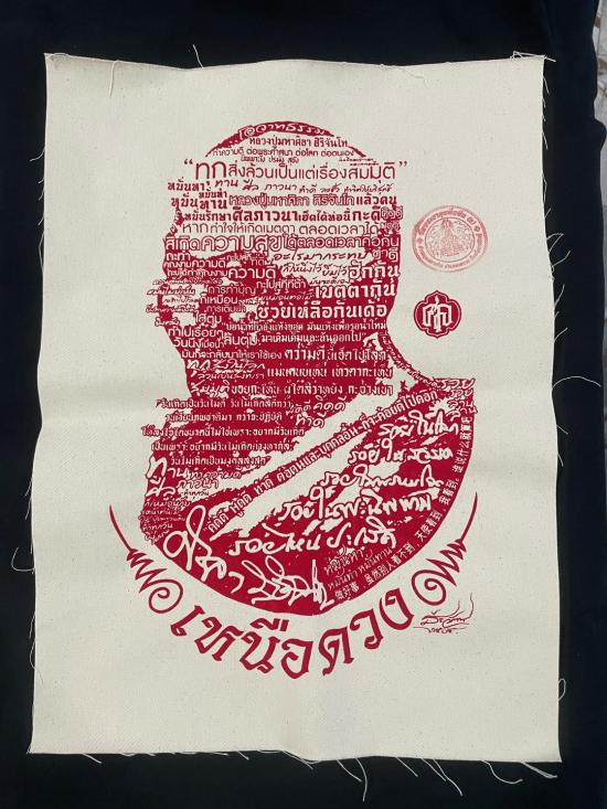 ผ้ายันต์ เหนือดวง ขนาด A 3 กว้างยาว 33 x 44 ซม. ปั้มตราวัดพระธาตุหมื่นหิน หลวงปู่ศิลา สิริจันโท