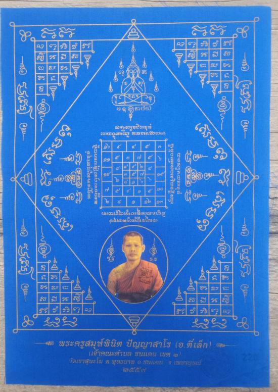 ผ้ายันต์ พระอาจาร์ย ตี๋เล็ก วัดเขาสุนะโม อ.ชนแดน จ.เพชรบูรณ์ ปี 2559 (น้ำเงิน) ขนาด 30 x 42 ซม.