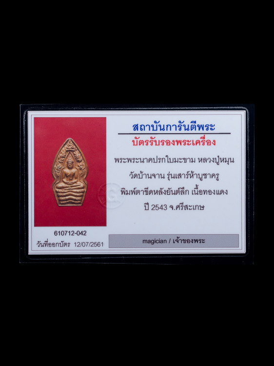 พระนาคปรกใบมะขาม หลวงปู่หมุน วัดบ้านจาน พร้อมบัตรรับรองจากเว็บครับ ผมไม่ทราบที่ ยี่ห้อรุ่นครับ พระรังเก่า ชุดนี้ผมไปเหมาบ้านที่กรุงเทพฯมา ได้มาหลายอย่าง ทยอยลงครับ วัดใจเท่าไหนเท่านั้นทุกรายการครับ
