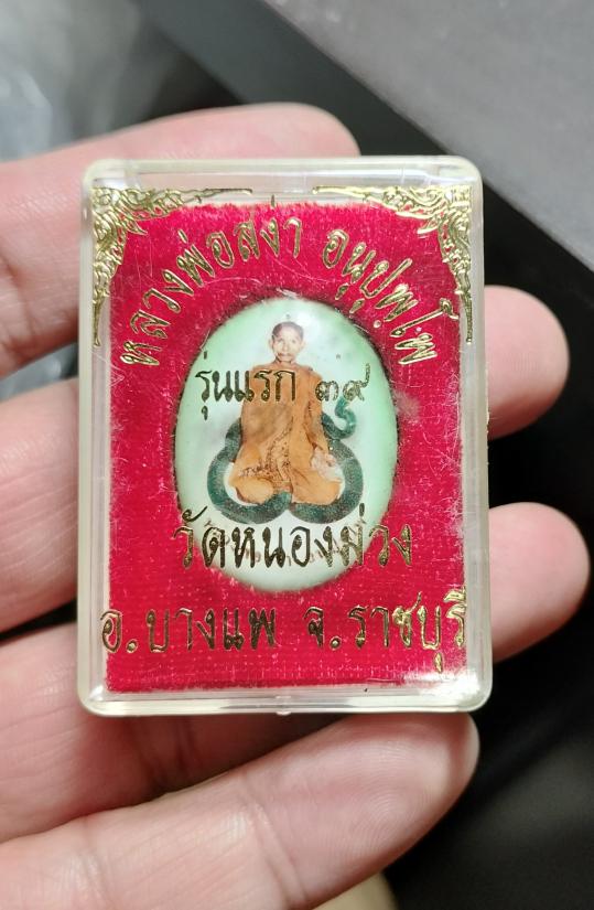 ล็อคเก็ตรุ่นแรก หลวงพ่อสง่า วัดหนองม่วง จ.ราชบุรี ปี39 ด้านหลังมีตะกรุด จีวร เกศา สภาพสวย กล่องเดิม เคาะเดียวแดง