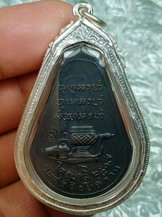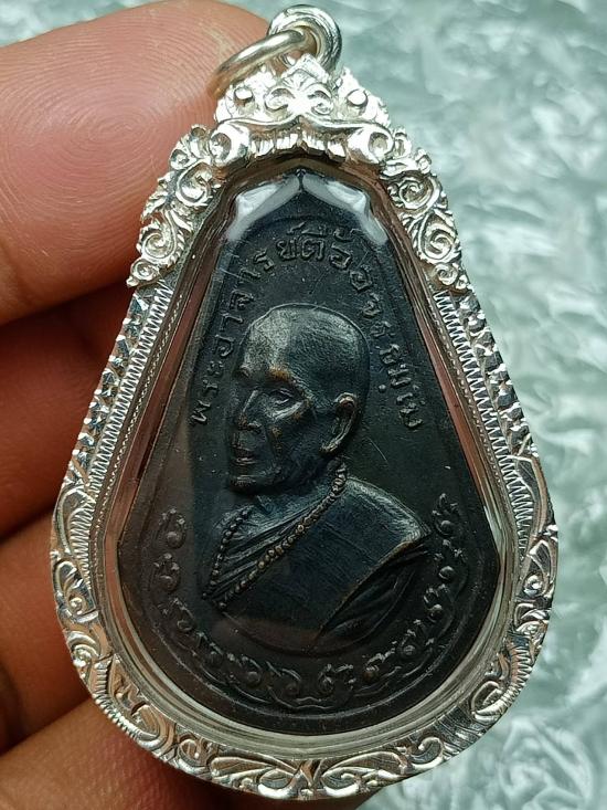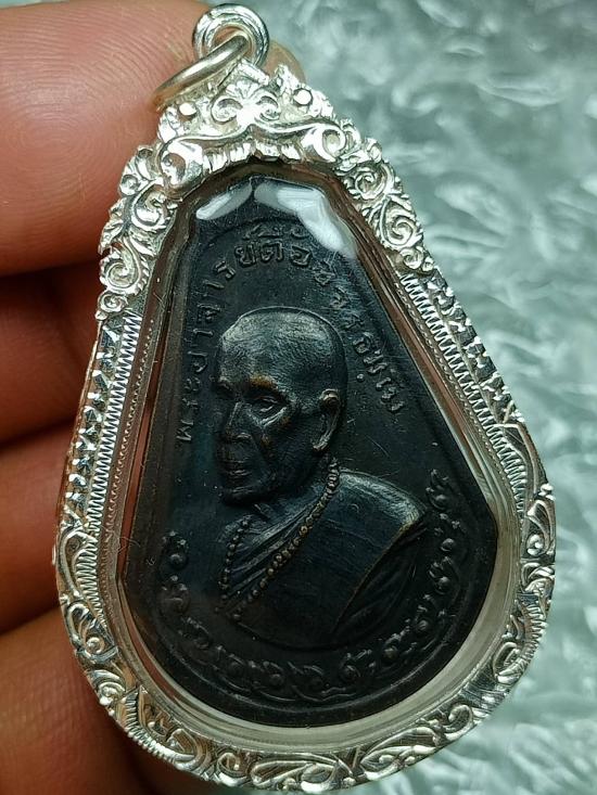 เหรียญไตรมาส ( มะละกอ ) ปี2517 หลวงปู่ตื้อ อจลธมฺโม วัดป่าอรัญญวิเวก จ.นครพนม เนื้อทองแดงรมดำ ตอกโค๊ดชัดเจน สภาพสวยผิวเดิมๆ พร้อมเลี่ยมเงินงานมืออย่างดี
