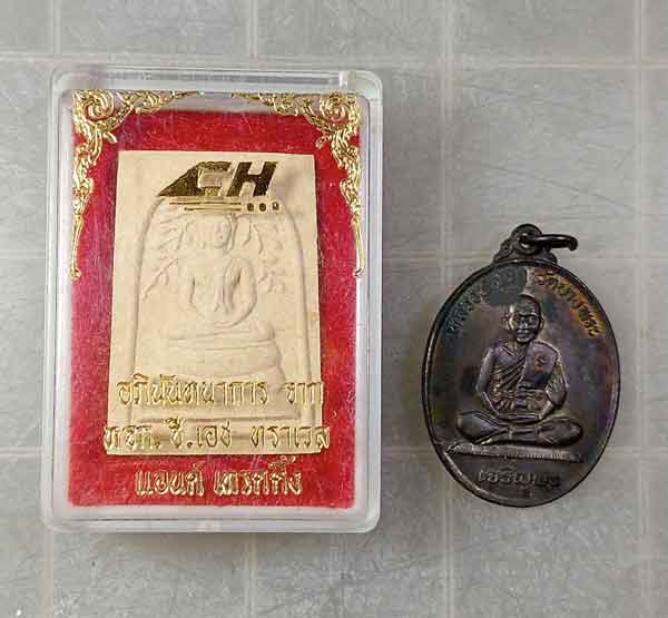 พระสมเด็จปรกโพธิ์ หลังหน้าเสือ เสาร์ 5 ปี 36 +เหรียญเจริญพร ปี 37 หลวงพ่อเปิ่น วัดบางพระ นครปฐม |
