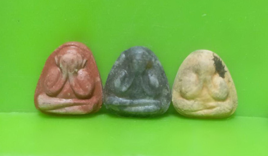 พระปิดตา ไตรแก้ว 3 องค์ครบชุด ปี ๒๕๑๒ พระธรรมโกษาจารย์ ชอบ อนุจารี วัดราษฎร์บำรุง ชลบุรี ผสมผงหลวงพ่อแก้ว จัดสร้างโดย หลวงพ่อบัว วัดบางเป้ง