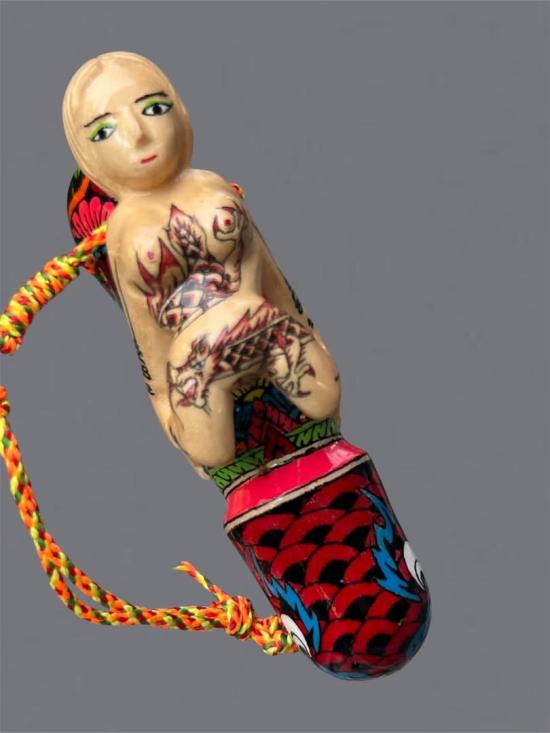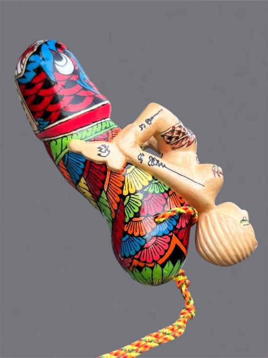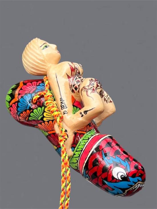 ปลัดขิกไม้โมกขาวเขียนสีลายชะมดนางแอน พระอาจารย์ซ้ง วัดประดู่ อินทราวาส ตลิ่งชัน