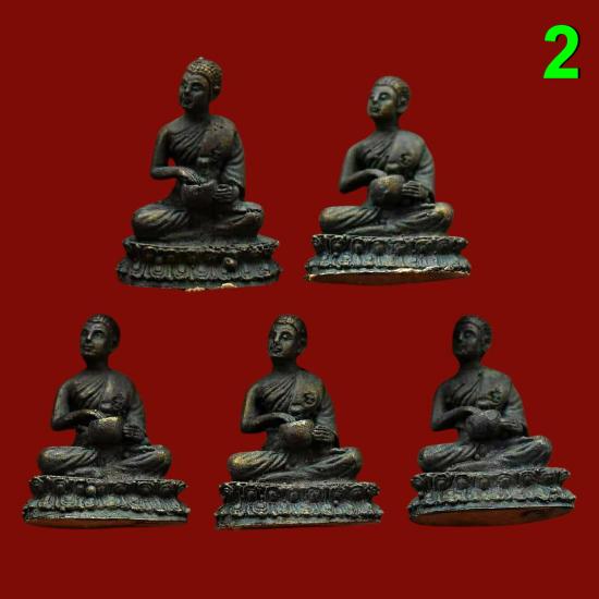 ชุด 5 องค์...พระอุปคุตจกบาตรก้นย่าม (มีกินไม่ขาด อดไม่เป็น จนไม่ได้) เนื้อทองชนวนผสม ปี 2558 หลวงปู่สิงห์ วัดบ้านป่าตะแบง จ.นครราชสีมา พร้อมซองใบคาถาเดิมจากวัด สภาพพระตามรูปที่ลงทุกประการ (ขนาดประมาณ 3 x 2 ซม.)