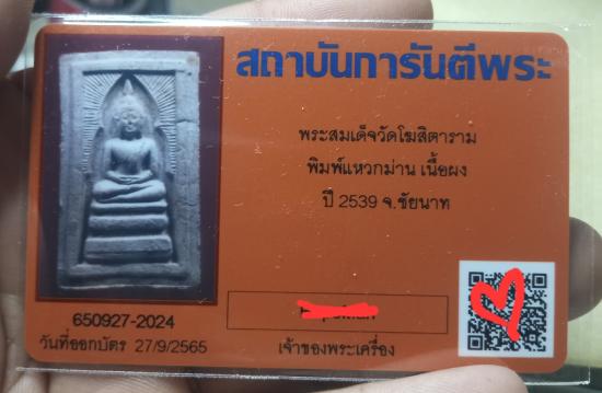 พระสมเด็จแหวกม่าน ย้อนยุค ปี 39 หลวงพ่อกวย วัดโฆสิตาราม หลังมีตราปั๊ม พร้อมกล่องเดิมมๆ พร้อมบัตร G คะ |