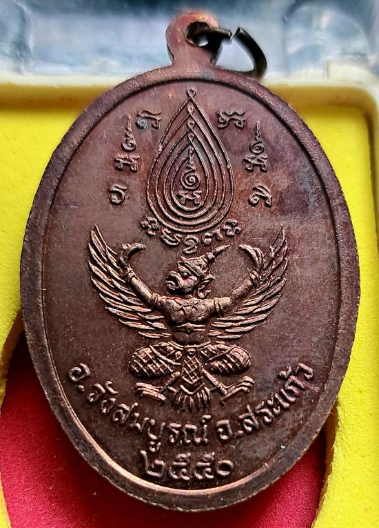 เหรียญหลวงปู่กาหลง วัดเขาแหลม อ.วังสมบูรณ์ จ.สระแก้ว หลังครุฑ ปี 2550 รุ่นสถาปนาอำเภอวังสมบูรณ์