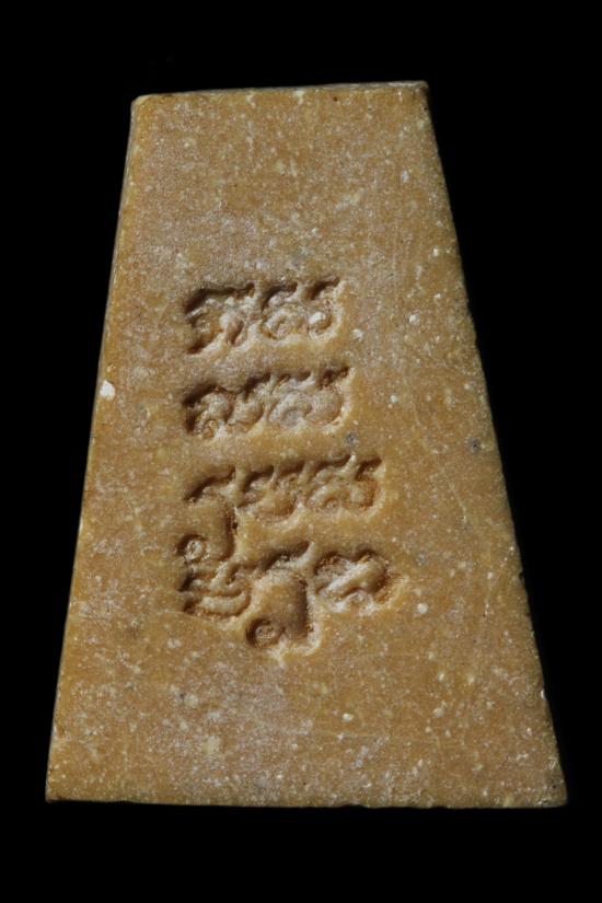 หลวงพ่อกวย วัดโฆสิตาราม พระสมเด็จเนื้อผงน้ำมัน หลังยันต์สี่แถว พิมพ์คางหมู ออกวัดบ้านแค จ.ชัยนาท ปี 2518 หลวงพ่อกวยปลุกเสก |