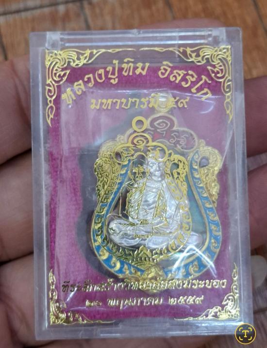 หลวงปู่ทิม วัดละหารไร่ เหรียญเสมา รุ่น มหาบารมี 59 เนื้อทองแดงมันผิวรุ้ง ลงยา หน้ากากเงิน ขอบปลอกลูกปืนลงยา หมายเลข 11879 กล่องเดิม |