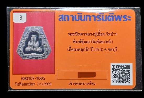 วัดใจ 40...ปิดตาหลวงปู่เฮี้ยง วัดป่า ชลบุรี พิมพ์ซุ้มเถาวัลย์หกเหลี่ยม 2 หน้า เนื้อผงคลุกรัก ปี10 พระคัดสวยๆไม่ผ่านการใช้เลยครับ พร้อมบัตรรับรองจากทางเว็บ #3