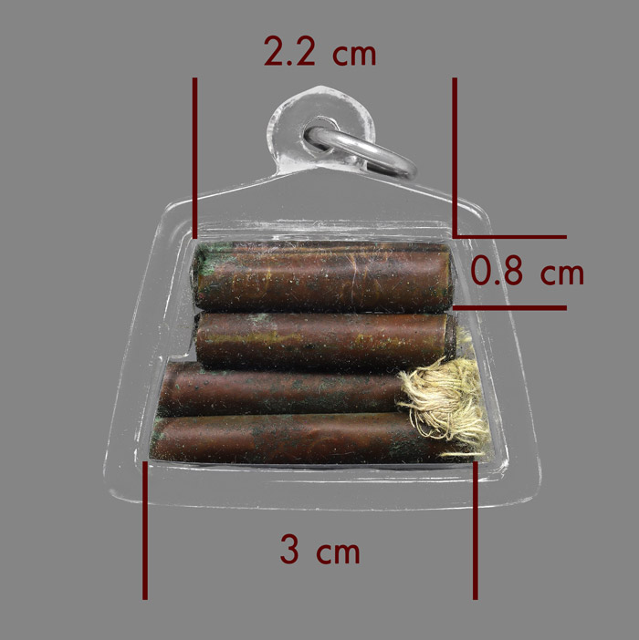 (วัดใจ)ตะกรุด 4 ดอก(ไม่ทราบที่) เนื้อทองแดง พร้อมเลี่ยมพลาสติก |