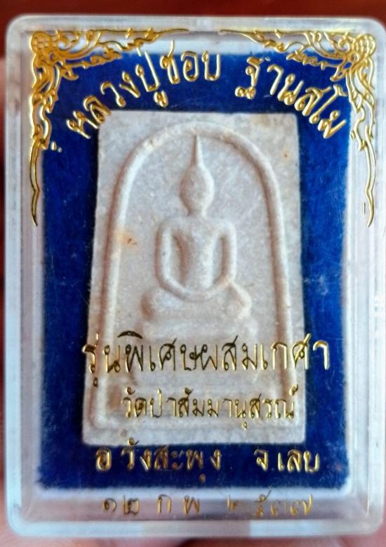 สมเด็จหลังรูปเหมือน หลวงปู่ชอบ รุ่นพิเศษผสมเกศา วัดป่าสัมมานุสรณ์ จังหวัดเลย ปี 2537 พร้อมกล่องเลย
