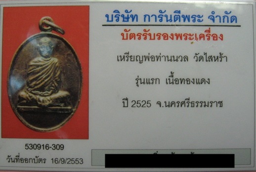 วัดใจ สวยมากๆๆ!!เหรียญรุ่นแรก พ่อท่านนวล วัดไสหล้า พร้อมบัตรรับรอง g |