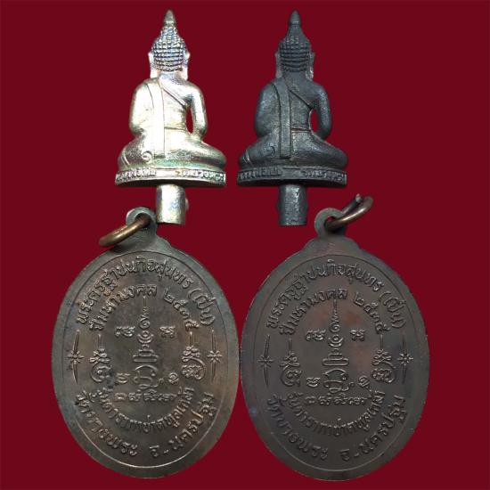พระยอดธงเนื้อเงิน+เนื้อนวะโลหะรุ่น 1 หลวงพ่อเปิ่น วัดบางพระ กล่องเดิม+(แถมเหรียญ2เหรียญ เนื้อนวะกับเนื้อทองแดงครับ ตามรูป |