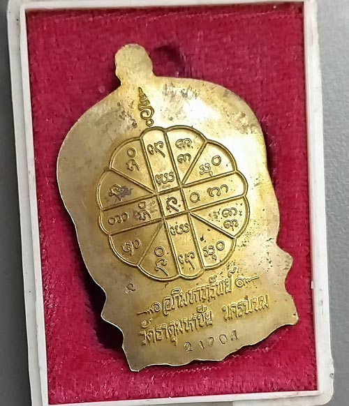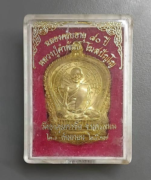 เหรียญนั่งพาน หลวงปู่คำพันธ์ ฉลองอายุครบ 80 ปี วัดธาตุมหาชัย จ.นครพนม ปี 2537 กล่องเดิม
