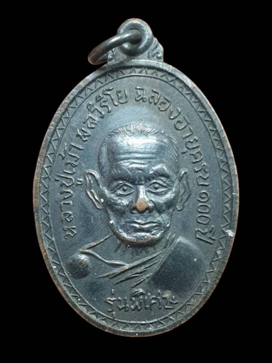 เหรียญหลวงปู่เม้า วัดสี่เหลี่ยม รุ่นพิเศษฉลองอายุร้อยปี เนื้อทองแดง ปี2517 เลี่ยมกรอบพลาสติกกันน้ำพร้อมใช้