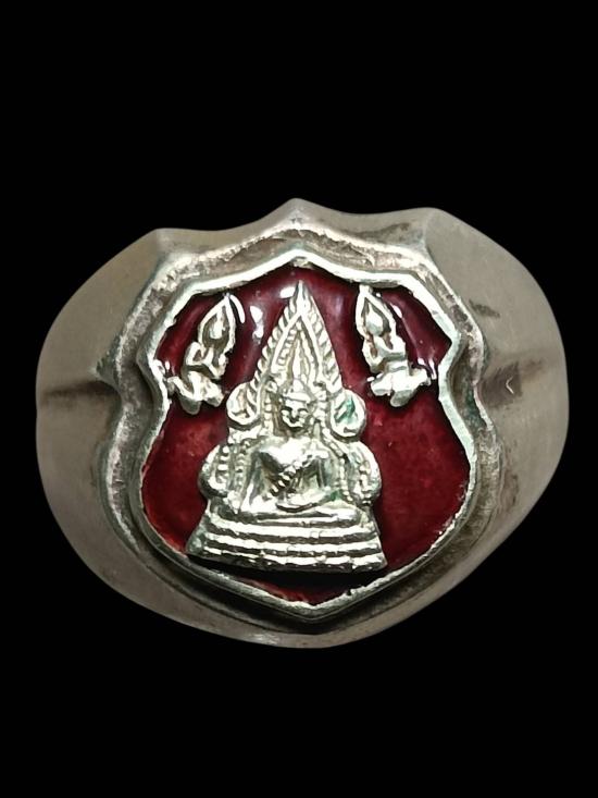 แหวนพระะุทธชินราชลงยาแดง ไม่ทราบที่คับ ชินราชแบบแปะชิ้นต่อคับชินราชคลายเงินคับไม่แน่ใจขอวัดใจคับ |