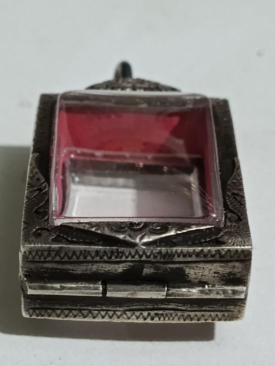 ตลับเงินแท้เก่า เปิดหลังแกะลายกนกเก่า ใส่พระคำข้าว พระผงวัดปากน้ำ หนาหนัก 12.87 กรัม งานเก่าสนามแพงหมดแล้วครับ