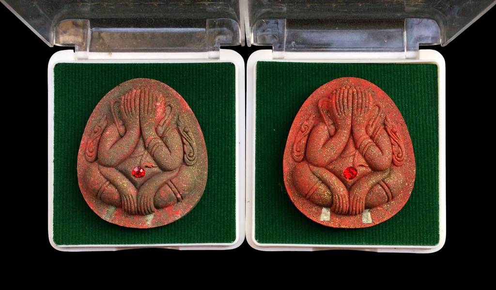+!!เคาะเดียวllดง ตลอดสาย!!+ (รับ 2 องค์) พระปิดตา หลังยันต์หุ่นพยนต์ รุ่นเสาร์5 มหาเศรษฐี หลวงพ่อเมียน วัดบ้านจะเนียง จ.บุรีรัมย์ ปี2557 เนื้อว่านแดง(พิมพ์ใหญ่) ฝังพลอย ฝังตะกรุดเงิน 2 ดอก พร้อมกล่องเดิม