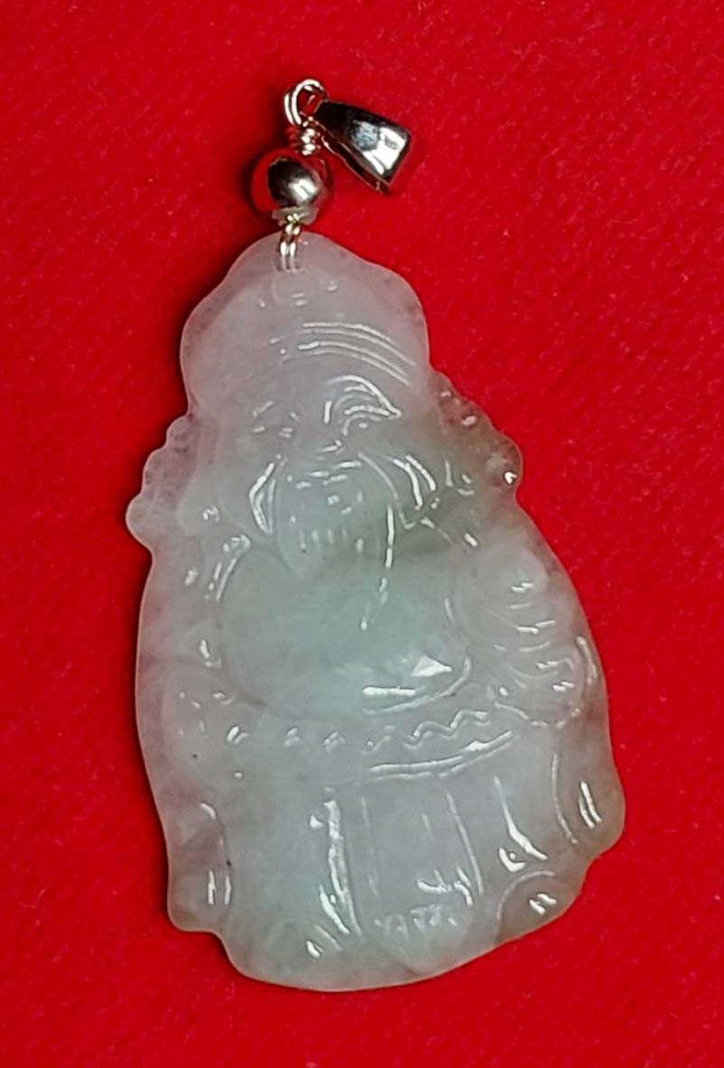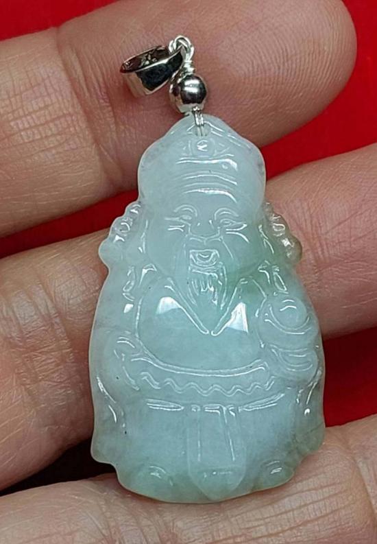 ***วัดใจ***จี้หยกพม่า เทพเจ้าไฉ่ซิงเอี้ย สีขาว สุง 3.5 ซม. |