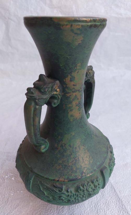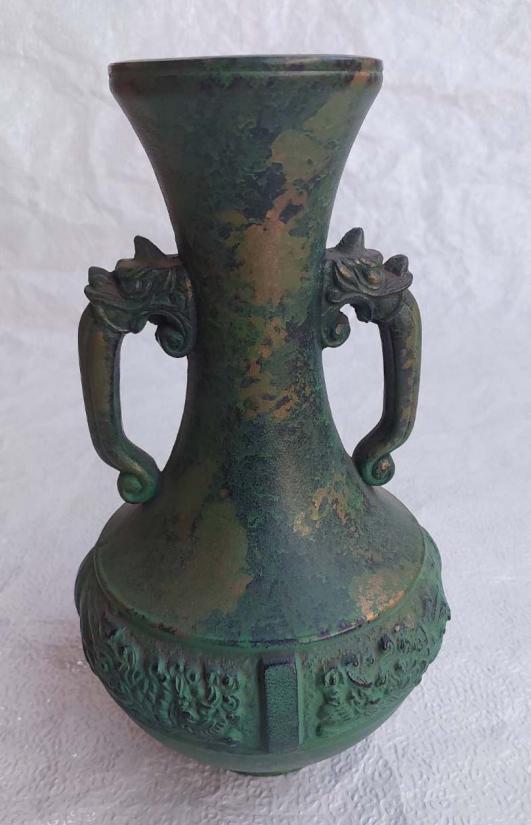 ***วัดใจ***แจกันเก่าเก็บทรงโบราณ หูมังกร เนื้อสำริด สูง 11 นิ้ว น้ำหนัก 2 โลกว่า |