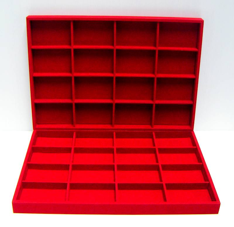 ถาดโชว์พระ แบบ16ช่อง(ใหญ่พิเศษ) ใส่บัตรG-PRA พร้อมองค์พระได้เลยคะหุ้มกำมะหยี่สีแดง สวยหรู ชุด2ใบ มือ1ใหม่เอี่ยม พระให้ดูเป็นตัวอย่างนะคะ |