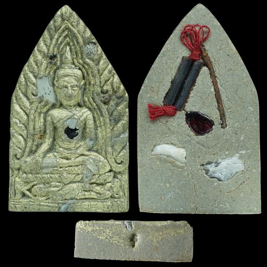 พระขุนแผนอินโดจีน เนื้อผงพราย หลวงพ่อชำนาญ วัดชินฯ วาระอายุวัฒนมงคล๕๕ ปิดทอง ฝังกะกรุดสาริกาทองแดง ตะปู 1ดอก มีพลอย กระดูก สวยๆครับ