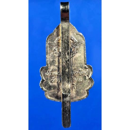 เหรียญในภาพมีลักษณะเป็นเนื้อกะไหล่ทองลงยาสีน้ำเงิน