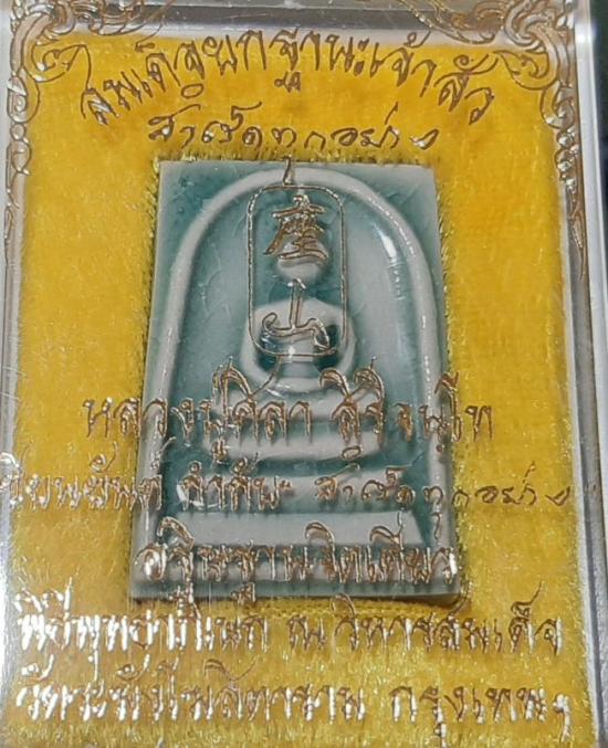 สมเด็จยกฐานะเจ้าสัว หลวงปู่ศิลา ปี 2567 รุ่นสำเร็จทุกอย่าง เนื้อกระเบื้องเคลือบเขียว กล่องเดิม |