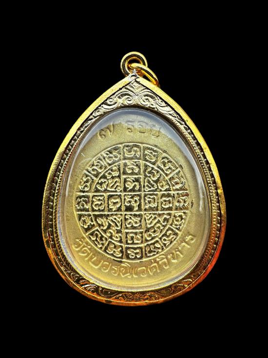 พระปิดตา 7 รอบ 84 พรรษา เนื้อโลหะชุบสามกษัตริย์ สมเด็จพระาณสังวร สมเด็จพระสังฆราช วัดบวรนิเวศวิหาร พร้อมเลี่ยมยกซุ้มสิงห์ชุบทอง+กล่องเดิม |