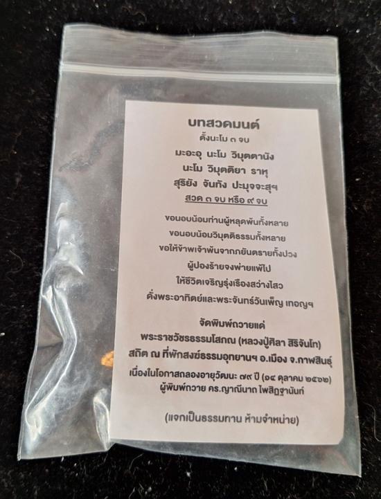 เบี้ยแก้ หุ้มจีวร ถักเชือก หลวงปู่ศิลา วัดโพธิ์ศรีสะอาด มีแผ่นเลขกำกับ ฝังตะกรุดทองเหลือง พร้อมใบคาถา ปี2567 |